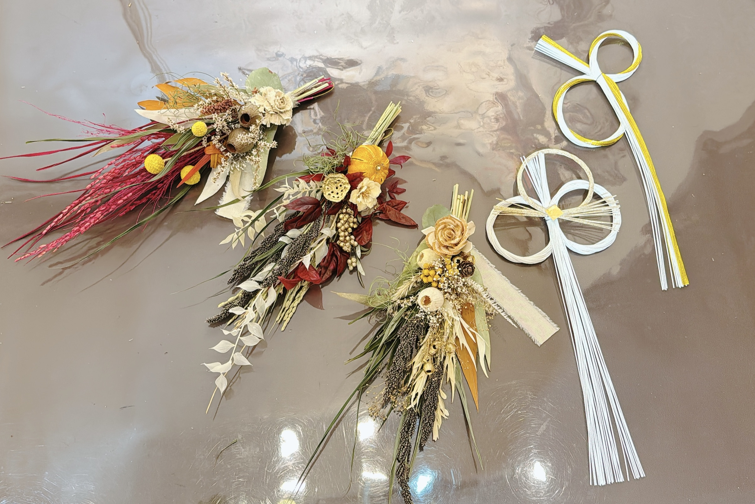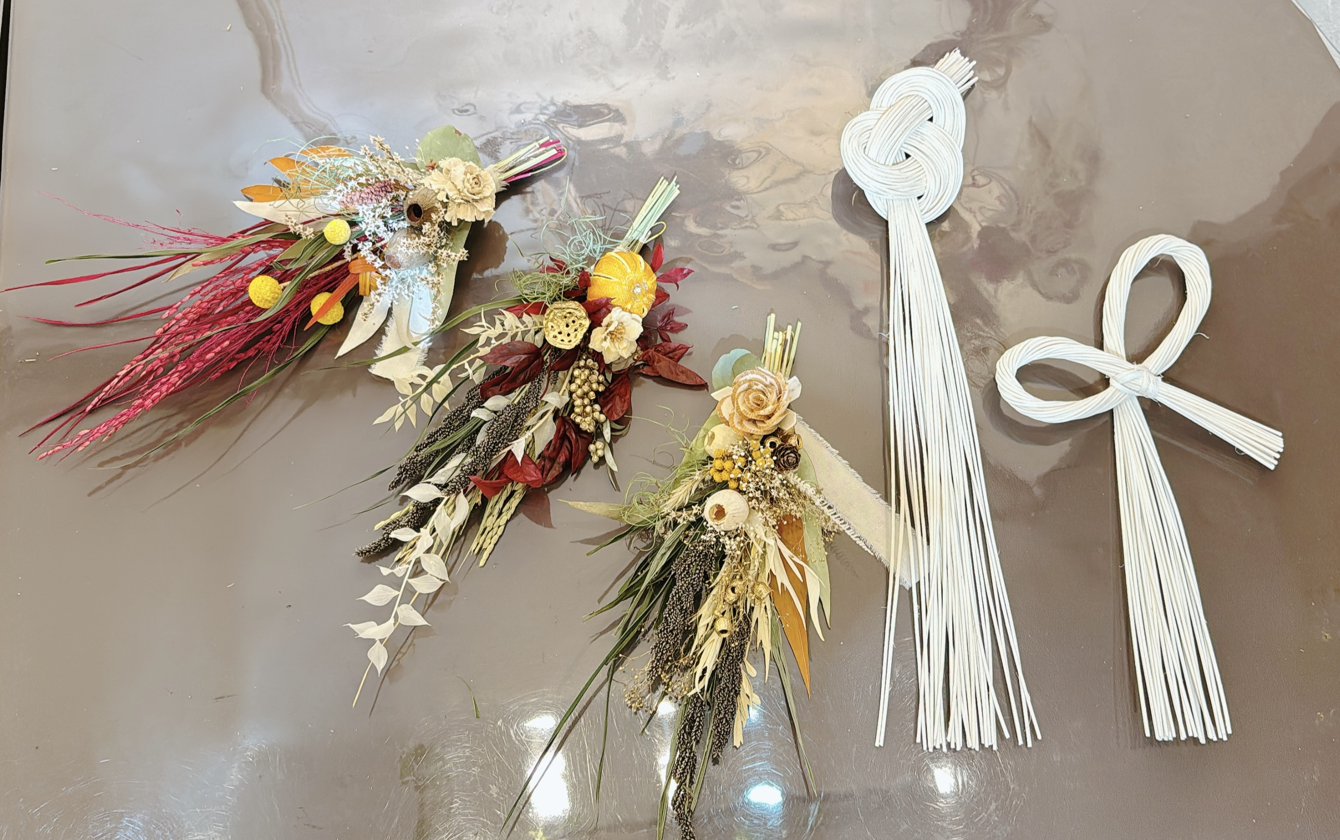 ✳︎全て選べる水引、スワッグ用の掛けひもと生地リボン付きです